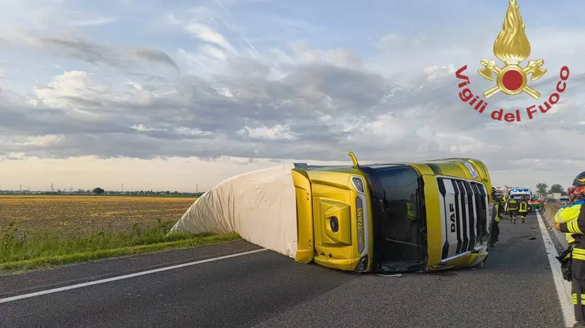 Tir si ribalta lungo la A13, autostrada bloccata nel Rodigino