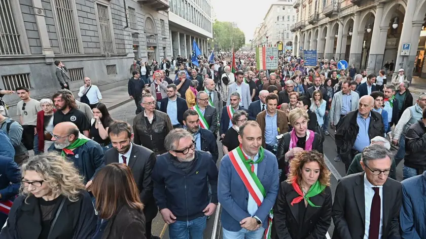 (ANSA) - TORINO, 24 APR - È partita da piazza Arbarello, a Torino, la tradizionale fiaccolata che inaugura le celebrazioni del 25 aprile, Festa della Liberazione dal nazifascismo. Fra gli esponenti politici presenti, il sindaco Stefano Lo Russo e l'assessore regionale Andrea Tronzano. Ci sono i gonfaloni dell'associazione nazionale dei deportati, lo striscione dell'Anpi, Associazione nazionale partigiani d'Italia, i sindacati e lo striscione dei 'Partigiani della pace', che riunisce Fiom, Fronte della Gioventù Comunista e Coordinamento Antifascista Torino, seguito da Sinistra Anticapitalista. A chiusura del corteo lo spezzone sociale 'Torino partigiana', aperto dallo striscione "Askatasuna vuol dire libertà. Torino è partigiana. Contro genocidio, guerra e attacchi agli spazi sociali", con la partecipazione di studenti universitari e medi, del coordinamento Torino per Gaza, degli autonomi di Askatasuna e di attivisti No Tav. La fiaccolata è diretta in piazza Castello, dove sono previsti gli interventi delle autorità e della direttrice della Fondazione Nuto Revelli di Cuneo Beatrice Verri. (ANSA).