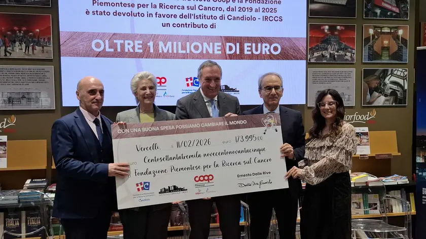 (ANSA) - TORINO, 11 FEB - In sette edizioni di raccolte fondi per Candiolo, Nova Coop ha superato il milione di euro donati alla Fondazione Piemontese per la Ricerca sul Cancro, a sostegno dell'attività clinica e scientifica dell'Istituto per la ricerca e la cura del cancro. L'ultimo assegno, del valore di 173.995 euro, è stato consegnato questa mattina ed è il frutto di tre iniziative solidali portate avanti nel 2025, la campagna 'Scegli il prodotto Coop e insieme sosteniamo la ricerca contro il cancro', il progetto Verde Speranza e una raccolta solidale promossa dai dipendenti dell'Ipercoop di Torino. Coi nuovi fondi sarà acquistata una piattaforma automatizzata di profilazione tumorale per il reparto di Anatomia Patologica, che consente di garantire risultati sempre più accurati e affidabili nella definizione dei biomarcatori predittivi, elementi fondamentali per orientare le terapie oncologiche mirate e personalizzate. Inoltre, dal 2023 la collaborazione tra Nova Coop e la Fondazione ha consentito di portare avanti un programma di visite di screening riservate alle socie e ai soci Coop, e con la disponibilità di 3mila visite per il 2026, il numero complessivo supera le 10mila prestazioni. "La prevenzione - sottolinea - Piero Fenu direttore sanitario dell'Irccs Candiolo - è la miglior cura per i tumori, prevenzione primaria, cioè gli stili di vita, e secondaria ossia le visite e i controlli. L'adozione diffusa di efficaci strategie di prevenzione oncologica potrebbe determinare una riduzione dei decessi per tumore fino al 50%, un dato di enorme rilevanza, se si considera che, solo nel 2025, in Italia sono stati stimati circa 170mila decessi per malattie oncologiche". "Il cancro è curabile e questo è un incentivo in più a continuare e non lasciare indietro niente - aggiunge la presidente della Fondazione, Allegra Agnelli - e se in 40 anni siamo arrivati dove siamo lo dobbiamo ai nostri sostenitori. Per questo non saremo mai abbastanza grati a Nova Coop e a tutti i soci per il sostegno che ci garantisce da anni". "Oggi - sottolinea il presidente di Nova Coop, Ernesto Dalle Rive -superiamo il milione di euro donati a Candiolo nel corso degli anni". (ANSA).
