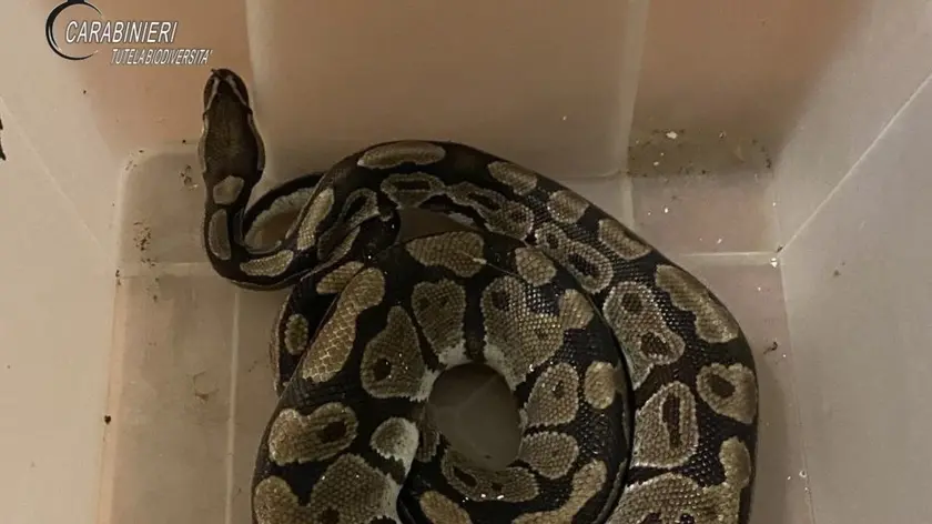 (ANSA) - RAVENNA, 17 APR - Martedì pomeriggio i carabinieri del reparto Biodiversità di Punta Marina (Ravenna) sono intervenuti per il recupero di un serpente nelle campagne di Lugo, nel Ravennate. I militari, esperti del settore, hanno identificato l'esemplare come appartenente alla specie Python regius o pitone reale di colorazione ancestrale della lunghezza di circa 1,2 metri e del peso di un chilo e mezzo. La specie Python regius è inserita nell'appendice II della Convenzione Cites che regola il commercio degli animali e piante a rischio di estinzione. Il pitone, in evidente stato di ipotermia, è stato portato a Marina di Ravenna al centro territoriale di accoglienza degli animali confiscati o sequestrati, dove è stato posto in un ambiente riscaldato più idoneo alle sue esigenze etologiche. Sono in corso accertamenti, unitamente al nucleo carabinieri forestali di Bagnacavallo, sui possibili responsabili dell'abbandono del rettile o della omessa custodia che potrebbe averne causato la fuga, circostanze entrambe penalmente rilevanti. (ANSA).