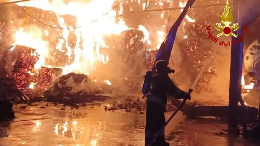 (ANSA) - TRIESTE, 07 FEB - Un vasto incendio è divampato nel pomeriggio a Caneva (Pordenone) all'interno del deposito di un'azienda agricola, coinvolgendo circa 500 rotoballe di fieno. Sul posto stanno operando i vigili del fuoco del Comando provinciale di Pordenone, con squadre provenienti dai distaccamenti di Sacile e Maniago, supportate da autobotti e autopompe della sede centrale di Pordenone, dal distaccamento di Gaiarine (Treviso), da mezzi del comando di Treviso e da un'autobotte kilolitrica proveniente dalla base Usaf di Aviano. In arrivo anche un'ulteriore autobotte kilolitrica dal comando dei Vigili del fuoco di Gorizia. L'intervento è mirato allo spegnimento delle fiamme e al contenimento del rogo per evitare la propagazione ad altre strutture adiacenti, dove sono presenti anche alcuni animali. (ANSA).