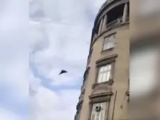 Ucraina, il momento in cui un drone russo colpisce Leopoli