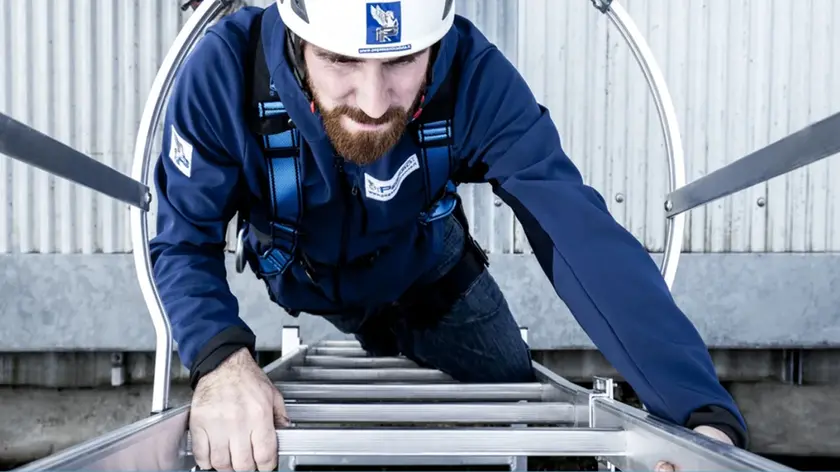 L'installazione di una linea vita verticale su una scala esistente, o la sostituzione della scala con un modello che ne è provvisto nativamente, garantisce una sicurezza "attiva".