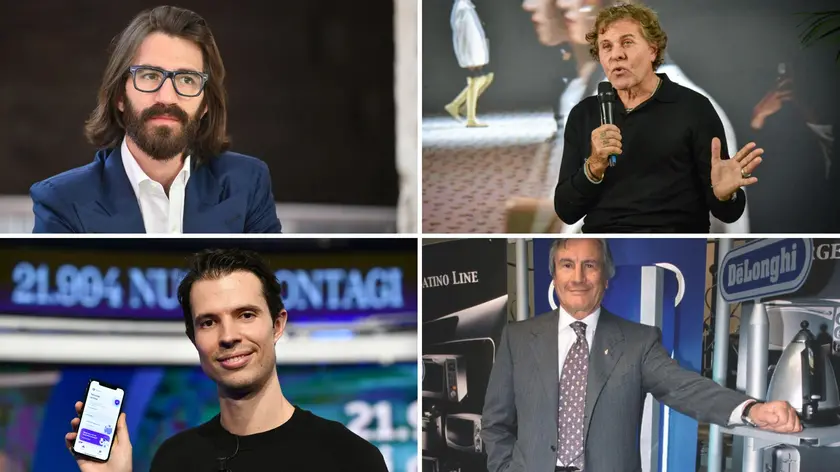 A sinistra, in alto Leonardo Maria Del Vecchio, in basso Luca Ferrari. A destra, in alto Renzo Rosso e in basso Giuseppe De Longhi