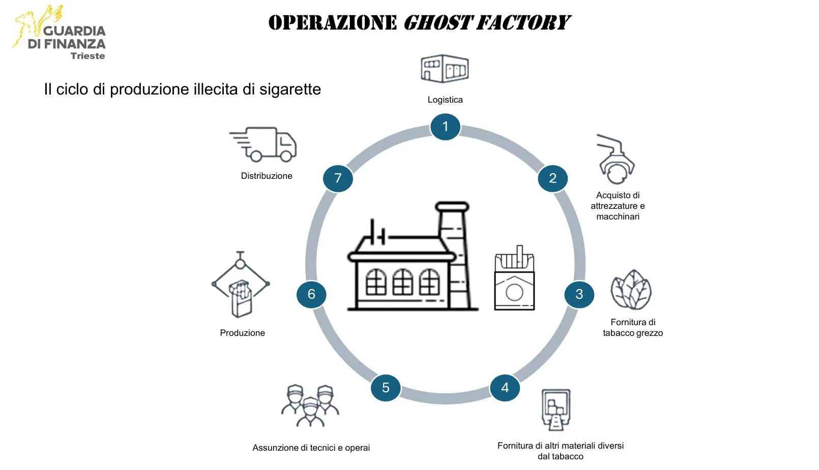I numeri dell’inchiesta sono impressionanti: in soli cinque mesi la fabbrica ha immesso sui mercati del Nord Europa (dove un pacchetto può costare fino a 18 euro) circa 137 milioni di sigarette, per un profitto stimato di 89 milioni di euro. Al centro della rete logistica è emersa una nota società di autotrasporti triestina che forniva copertura e locazione ai siti produttivi.
