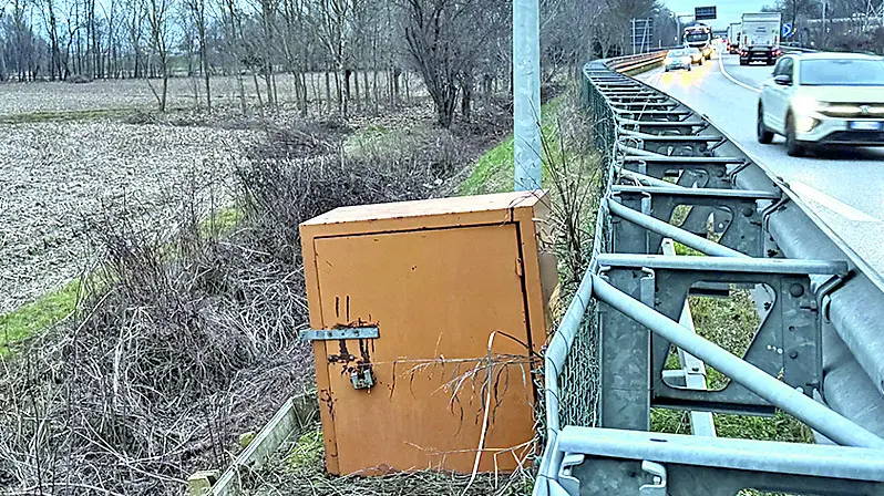 L’autovelox lungo la Postumia a Fontaniva abbattuto da Fleximan (Foto servizio Piran)