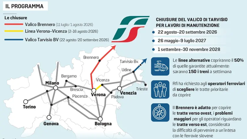 Interessate, rispetto alle direttrici alternative, anche Pordenone e Sacile. L’obiettivo condiviso è pianificare in anticipo la rimodulazione dei flussi, così da consentire alle imprese di organizzare per tempo le proprie catene logistiche e limitare le ricadute economiche sul sistema produttivo regionale. «A breve – ha aggiunto Amirante – sarà convocata la Cabina di regia regionale del trasporto e logistica per compiere le valutazioni necessarie in vista delle rimodulazioni, ma anche per cominciare a porre le basi su proposte da avanzare a Rfi, esplorando tutte le alternative possibili, per le interruzioni previste nel biennio 2027-28 al fine di mitigare il più possibile i contraccolpi per il sistema logistico regionale».