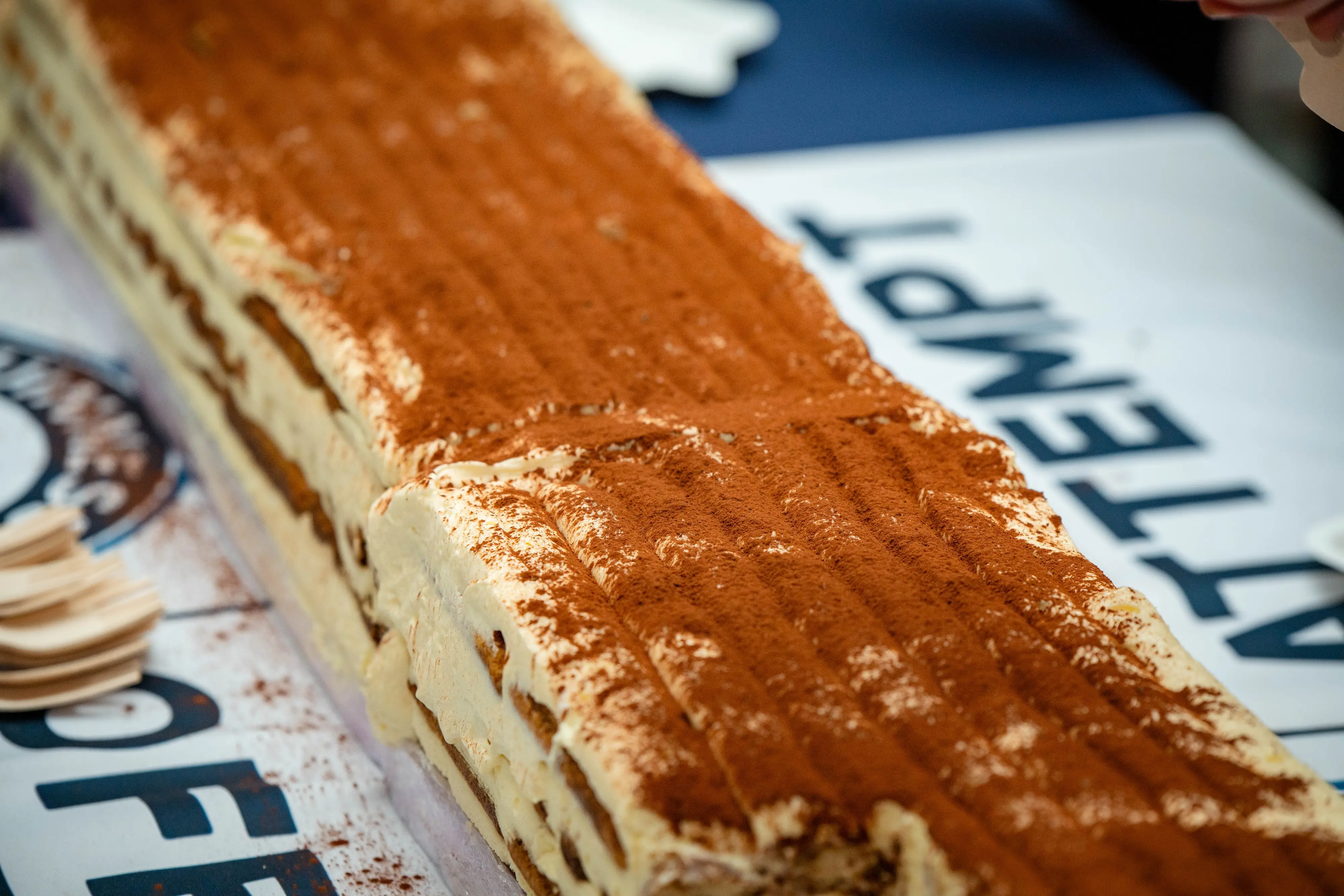 Il primato da battere è di 273,5 metri, si punta a raggiugnere i 300 metri: 800 litri di caffè (rigorosamente Illy), 150 mila savoiardi, 500 chili di uova, 150 chili di panna e mascarpone