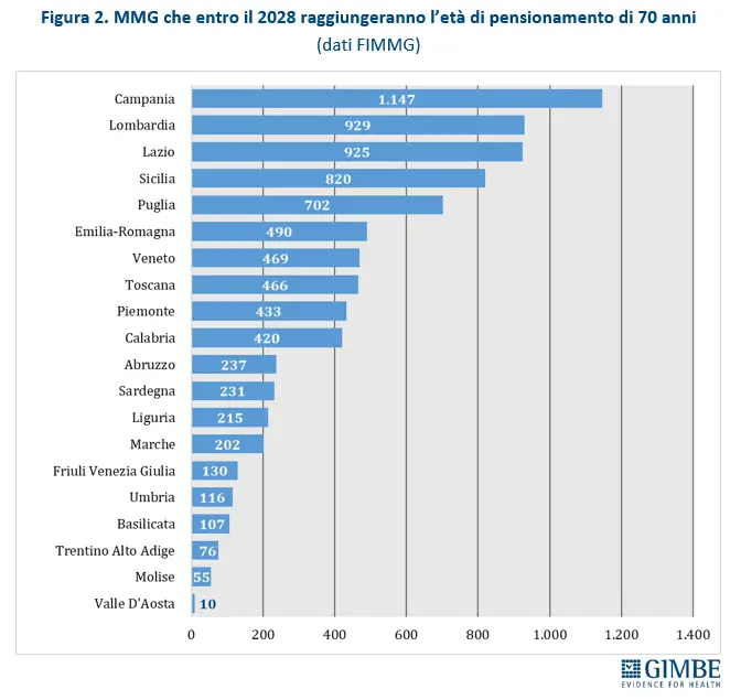 In regione ogni dottore segue in media 1473 pazienti, al di sopra del numero ottimale. Relativamente bassi i pensionamenti entro il 2028