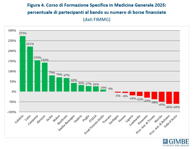 Parallelamente, il numero di nuove leve non riesce a compensare le uscite: le borse di studio per la formazione specifica in medicina generale, pur aumentate negli anni per far fronte al problema, sono in calo dal 2022 e non tutti gli iscritti completano il percorso.