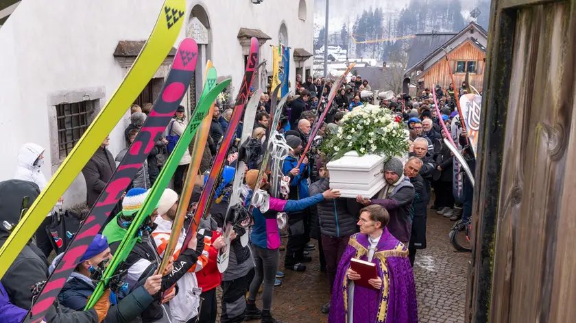 Il feretro di Simone attraversa gli scii in alto dagli amici