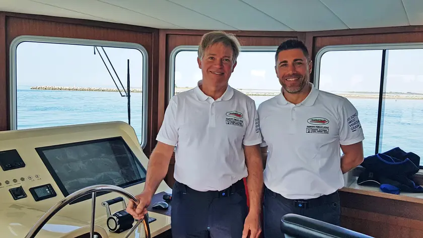 Il tragitto verso Lignano del Delfino Verde procede al comando di due comandanti (per il primo viaggio hanno voluto esserci entrambi) che si alterneranno nel corso della stagione, Claudio Memo e Maurizio Cleva.