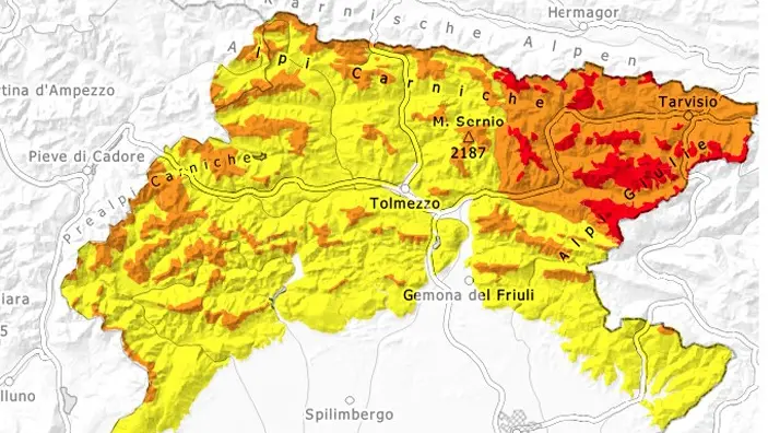 In particolare, nell'area prossima al Tarvisiano sono previste abbondanti nevicate. Il grado di pericolo valanghe è 4, forte. Il vento sarà da moderato a forte e il manto nevoso rimane instabile a livello generale. In molti punti sono possibili valanghe spontanee e possono coinvolgere gli strati più profondi raggiungendo dimensioni molto grandi. "Le escursioni sono vivamente sconsigliate".