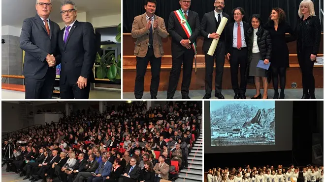 Letta la motivazione, il sindaco di Gemona, Paolo Urbani, ha conferito la cittadinanza onoraria al Messaggero Veneto. La pergamena è stata ritirata dal direttore Omar Monestier e dai familiari dello storico direttore, Vittorino Meloni.