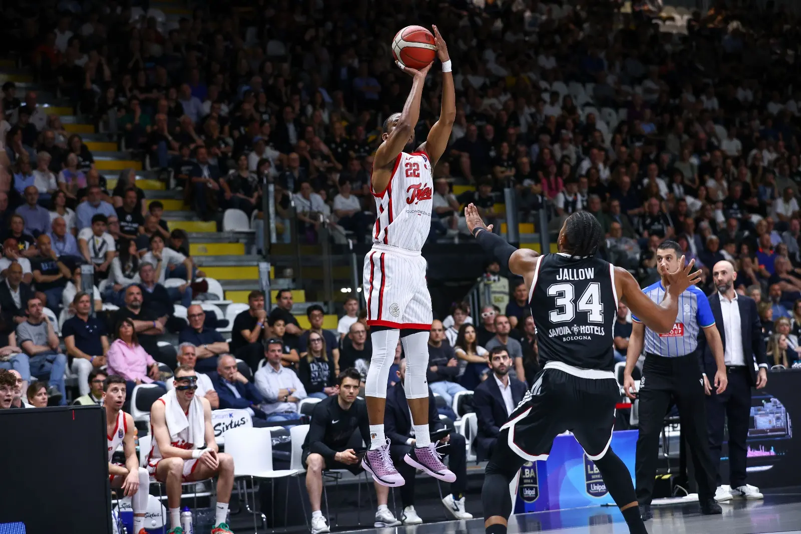 La bomba di Brown per il primo vantaggio biancorosso della partita. Bologna scalda i motori con Edwards, costringe presto Bannan al secondo fallo (dentro Uthoff dopo poco più di 2') e dall'8-10 firmato dal libero di Candussi ingrana la marcia. Nel tiro al bersaglio alla Virtus Arena, il pesciolino rosso lo vincono i padroni di casa che indovinano una impressionante serie di triple e allungano decisamente.