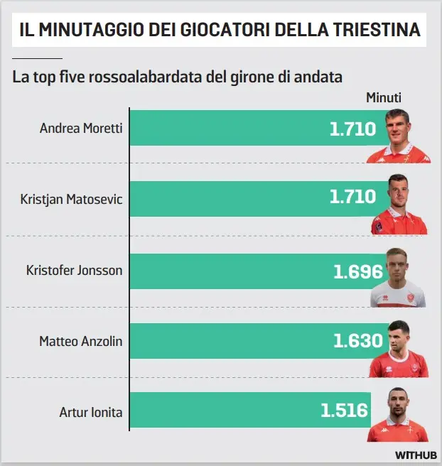 Il minutaggio dei giocatori della Triestina alla fine del girone d’andata evidenzia la ristrettezza della rosa alabardata, problema che sommato ai tanti infortuni rivela in maniera lampante i problemi con cui deve fare i conti ogni settimana Tesser.