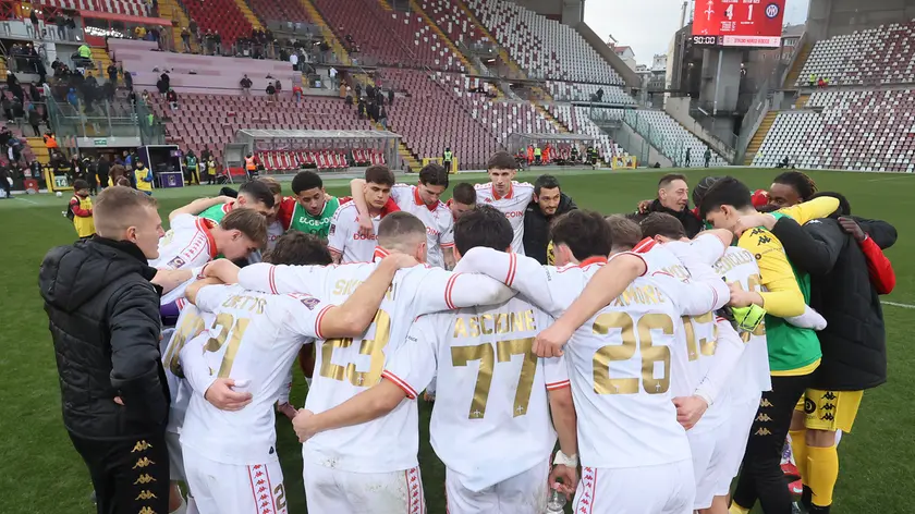 Il gruppo della Triestina dopo la vittoria contro l’Inter U23 (foto Andrea Lasorte)