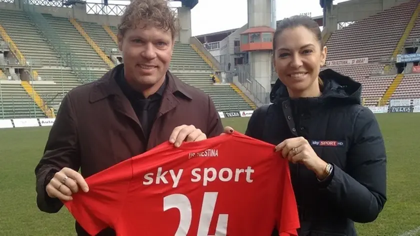 TRIESTE. Quasi una sorta di staffetta fra under squalificati in casa alabardata. Se domenica prossima Celestri rientrerà dalla squalifica, stavolta a essere stoppato per una giornata dal giudice sportivo è Filippo Carraro, che fra l’altro a Valdagno, oltre a sfoderare un nuovo look, è stato protagonista di un’ottima prova. Il giovane centrocampista è infatti incappato nella quinta ammonizione stagionale e pertanto salterà la partita contro l’Este. E a proposito degli avversari, anche loro dovranno fare a meno di un centrocampista squalificato, si tratta di Longato. Nelle file della Triestina rimangono in diffida Bradaschia, Leonarduzzi, Corteggiano e Pizzul. SKY. Visita di prestigio ieri mattina nella sede della Triestina, che ha ricevuto una troupe di Sky Sport 24 per un servizio che andrà in onda prossimamente sul canale tematico della tv via cavo. La troupe dell’emittente ha visitato la sede, dove si è svolta l'intervista all'Amministratore unico Mauro Milanese, poi ha effettuato un sopralluogo sul prato dello stadio e infine ha fatto una visita in palestra mentre la squadra si stava allenando. Per l’occasione Milanese ha donato una speciale maglia alabardata alla giornalista dell’emittente Marina Presello.