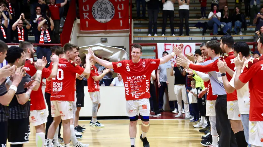 Il tributo finale al termine del match di ieri sera contro Macagi Cingoli è stato un concentrato di emozioni: l’affetto dei tifosi si è materializzato nel pasillo de honor tributatogli dai compagni di squadra, un corridoio di mani e applausi che ha accompagnato l’uscita di scena dell’ultimo baluardo di una Trieste d’altri tempi.