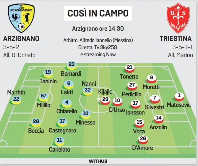 La fiducia arriva anche dal fatto che in settimana la squadra ha lavorato bene e con maggiore serenità di animo, come sottolinea l’allenatore alabardato: «Vincere aiuta sempre a lavorare bene, dà entusiasmo a questi ragazzi oltre a dar loro la giusta compensazione per quello che stanno facendo già da un po'. Hanno fatto un'ottima settimana lavorando molto bene, ma la vittoria con il Lumezzane mentalmente è passata, perché stiamo pensando solo a quello che ci aspetta ad Arzignano». Purtroppo dall’infermeria non rientrerà ancora nessuno. A dire il vero Vicario e Silvestro sono da considerare clinicamente a posto, ma Marino vuole essere prudente: «Per non ripetere alcuni errori passati stiamo cercando di andare con un briciolo più di calma, anche se sappiamo che il tempo non è dalla nostra ma ne va della salute dei ragazzi. La cosa principale è cercare di recuperarli totalmente, in modo tale da non dover far fronte a problematiche già avute nei mesi precedenti. Contiamo di poterli portare quantomeno in panchina entrambi nella prossima partita, mentre per Vertainen indicativamente se ne riparlerà intorno a metà febbraio». Oggi ad Arzignano Marino non avrà nemmeno Faggioli stoppato dal giudice sportivo, ma potrà contare nuovamente su Pedicillo che rientra dalla squalifica. E almeno stavolta avrà a disposizione anche un nuovo arrivo, un giovane giocatore offensivo come Simone Ascione che secondo l’allenatore dell’Unione potrà essere utile alla causa: «Si tratta di un giocatore duttile nel reparto offensivo - spiega Marino – Ascione può giocare sotto punta, fare l’esterno, partire largo o rimanere più stretto perché è molto valido tecnicamente, ha spunto e ci può dare una grossa mano. Abbiamo infatti bisogno di caratteristiche come saltare l'uomo ed essere imprevedibili. Naturalmente parliamo di un ragazzo molto giovane e come tutti i giovani va valorizzato, aiutato, seguito e messo nelle condizioni giuste per esprimersi al meglio». Tirando le somme, avendo una sola punta di ruolo a disposizione (Kljajic) ma anche un centrocampista in più rispetto all’ultima partita (Pedicillo), Marino potrebbe stavolta risfoderare il 3-5-1-1. Davanti a Matosevic ci dovrebbe essere il terzetto Moretti-Silvestri-Anzolin, mentre a centrocampo potrebbero esserci Jonsson, Voca e Pedicillo con D’Amore e Tonetto a fare i quinti. Davanti D’Urso dovrebbe agire da supporto a Kljajic, ma ad aiutare il reparto offensivo in corso d’opera Marino potrà contare anche su Attys e Ascione.