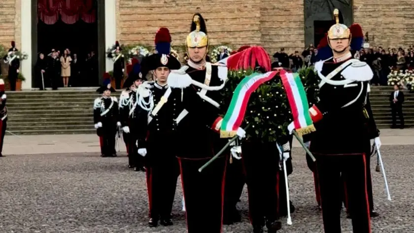 Mattarella abbraccia il figlio del carabiniere ucciso a Castel d’Azzano: il video