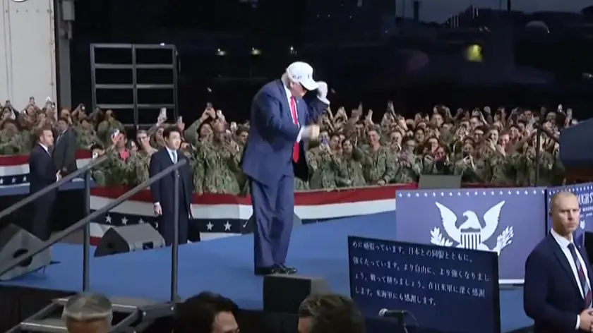 Trump in Giappone, balletto dopo il discorso sulla Uss George Washington